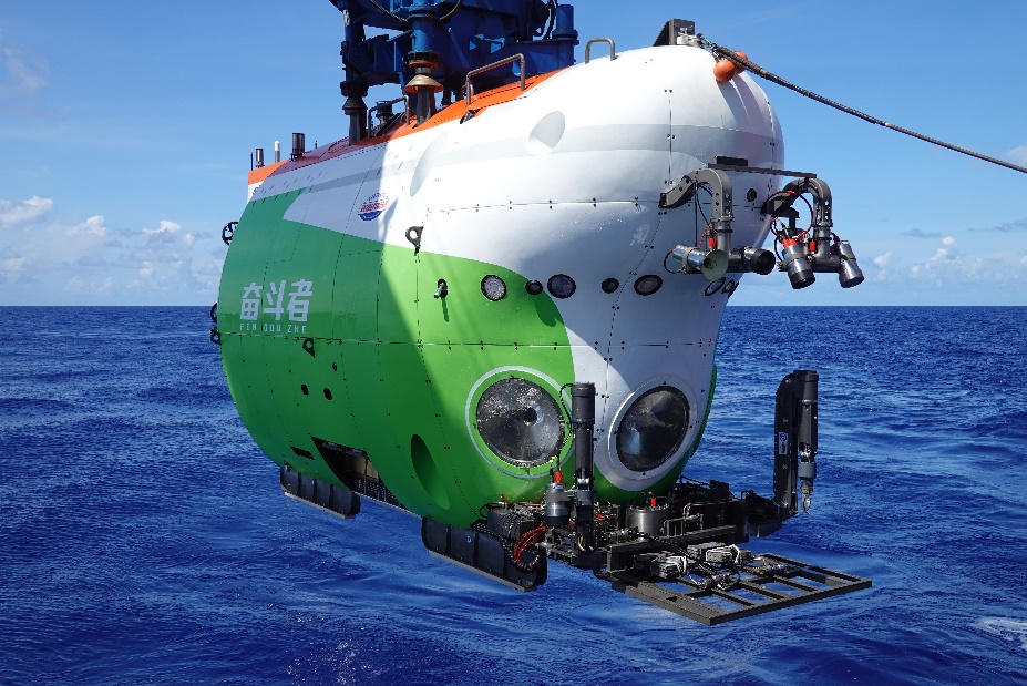 电动观测云台与作业机械手位于“奋斗者”号的前部