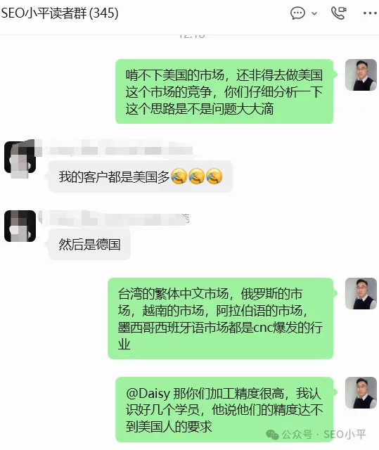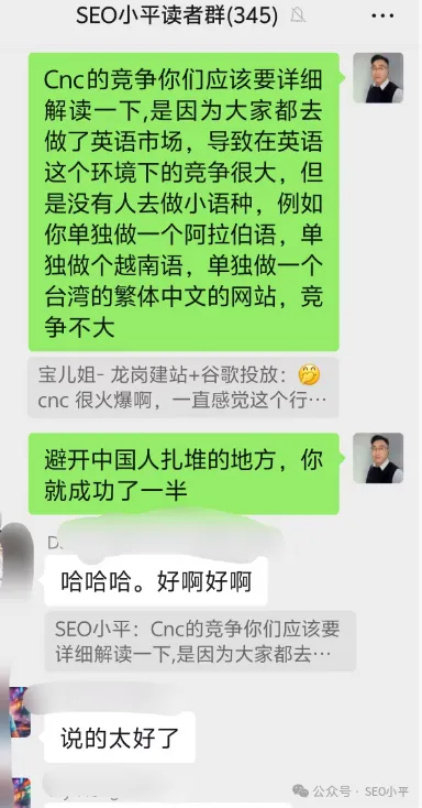 总之,SEO小平还是认为,如果我们公司财力有限,人力有限,最好避开中国人扎堆的市场(大公司财力富裕,人力充足那就闭眼冲,不要顾及。)这个也是一直建议大家做纯血小语种市场的原因。小公司找个竞争小点的蓝海市场,还是很香的。