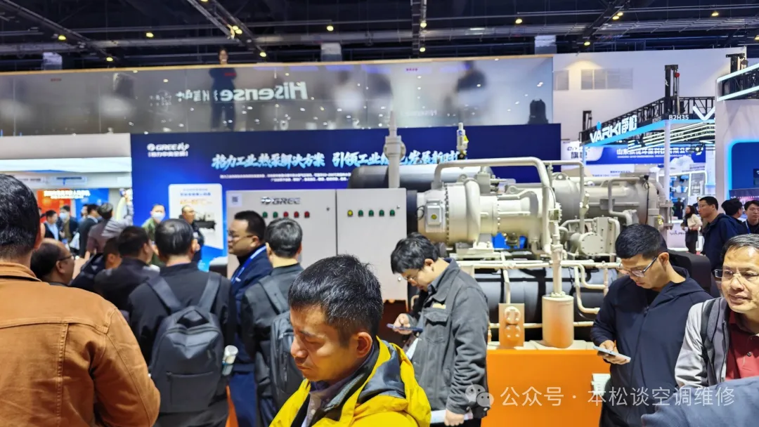 走进大型冷水机组展区,离心机、螺杆机样机气场十足,磁悬浮压缩机技术彻底打破应用边界,成为全场硬核亮点。