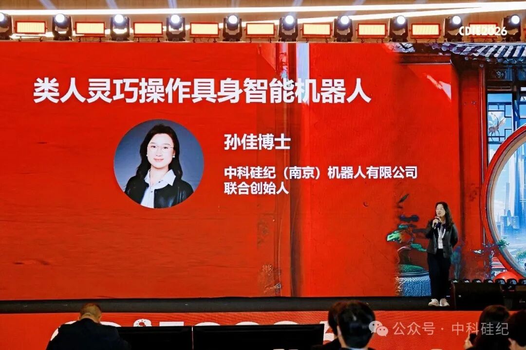 大会期间,中科硅纪联合创始人孙佳博士发表《类人灵巧操作具身智能机器人》主题演讲,系统分享了公司在灵巧手、具身智能算法、整机系统与场景落地方面的技术积累与产业化实践。