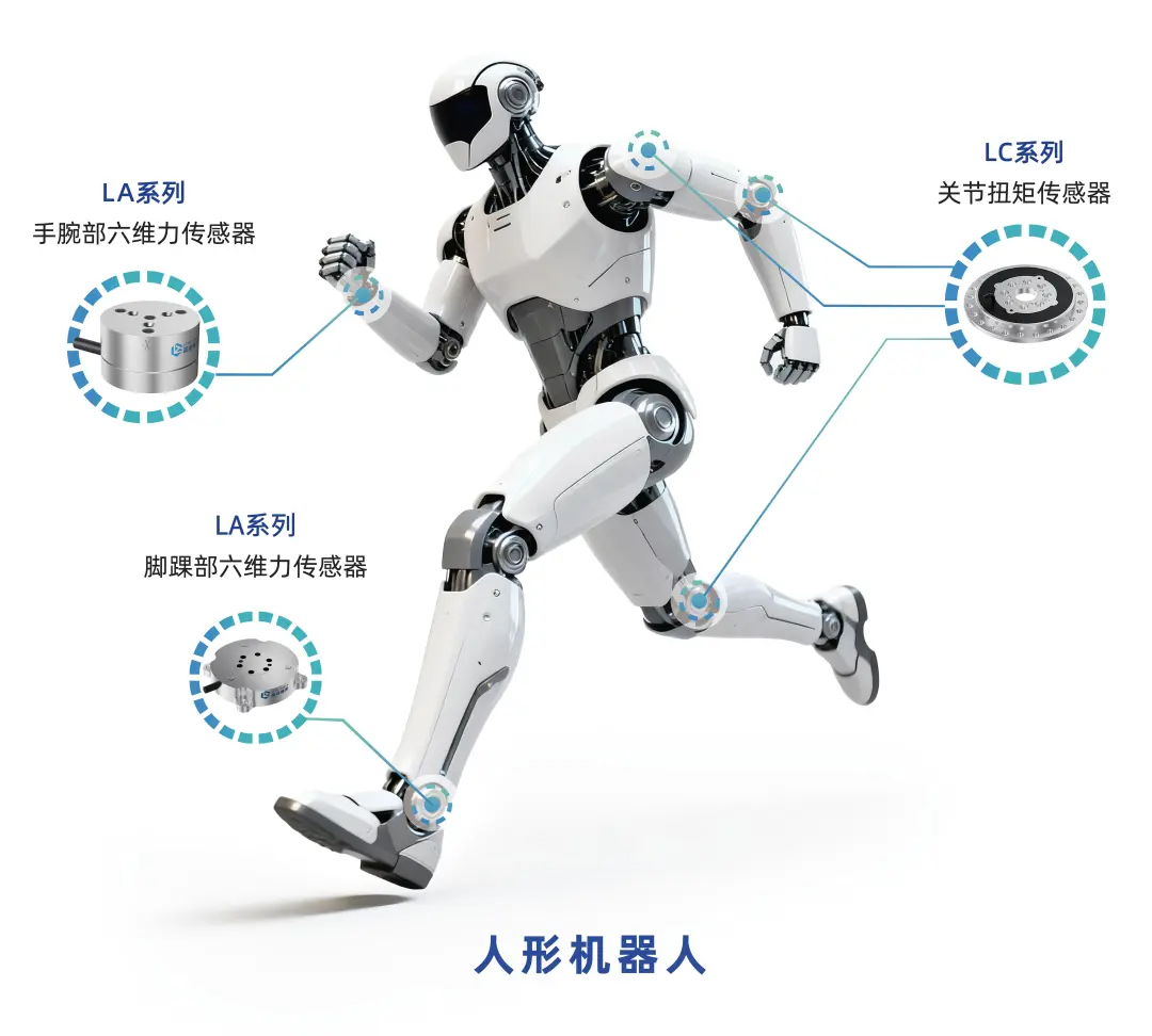 一台完美的人形机器人,需要配备4个六维力传感器(手腕、脚腕)以及28个关节扭矩传感器。这套组合拳构成了从硬件感知到算法修正的闭环:一旦某个关节力矩异常,控制系统会立即补偿——或调整躯干姿态,或增大另一侧腿部输出。