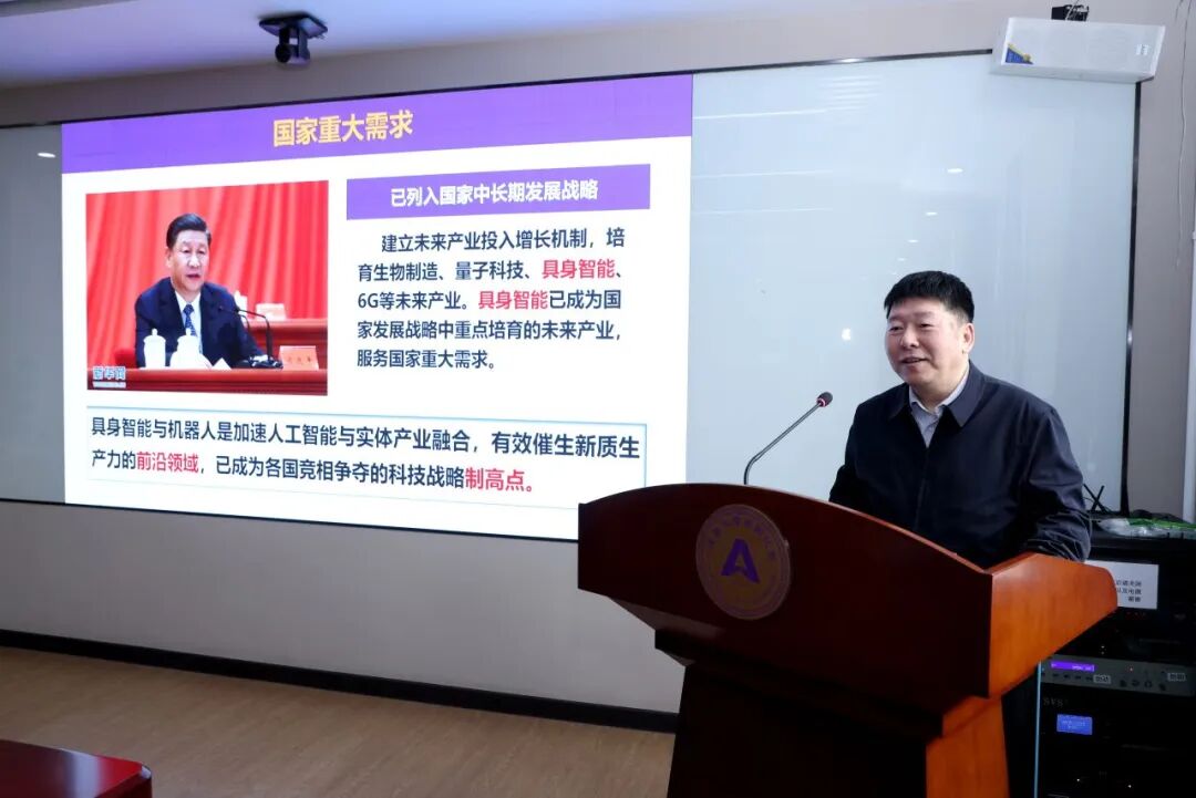 张涛代表院务会向学术委员会作“研究院发展工作报告”。报告回顾了研究院自2025年11月成立以来的建设成效,详细阐述了“强健本体+智慧大脑”的全栈技术攻关路线,以及“技术研发-中试验证-场景应用”的全链条转化枢纽建设情况。