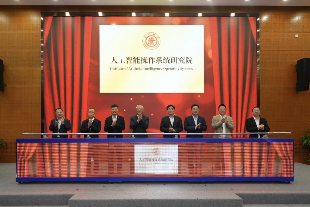 中国工程院院士凌文,上海交通大学副校长管海兵,上海交通大学校长助理、党政办公室主任杨明,计算机学院书记李昕荣,人工智能操作系统研究院院长陈海波,博泰车联网科技(上海)股份有限公司董事长应宜伦,南方电网人工智能科技有限公司总经理徐键等共同为研究院揭牌。