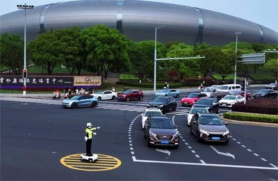 人机协同执勤,交警机器人护航苏超开幕赛高峰通行