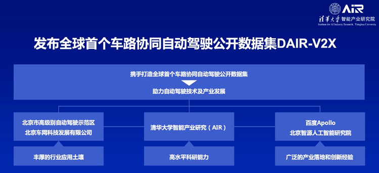 清华大学智能产业研究院(AIR)院长张亚勤教授认为,建设高等级智能网联道路是智能驾驶及智能交通的一大趋势,既保证了智能车量产的可能性,又保障了高级别自动驾驶基于场景驱动落地的可行性。在智能交通领域,AIR已与多家企业开展校企合作,包括车路协同自动驾驶、垂直行业、小车物流、Robotaxi等应用场景。面对相关数据集的缺乏,不能满足各界实现数据驱动车路协同的现实问题,AIR发起数据集建设,并将数据集对高校、科研院所、产业用户开放,可以更好地支撑科研机构进行科学研究。