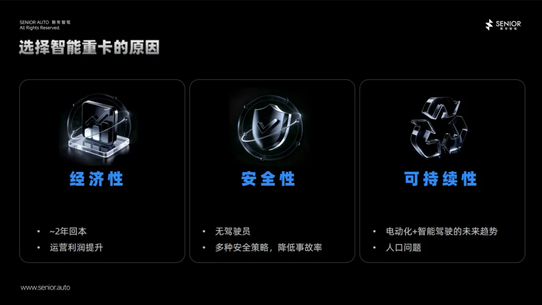 那么,客户为什么会采购智能驾驶系统?原因无外乎三点。第一是经济回报,客户希望尽快收回投资,并且在后续运营中获得越来越高的利润,这是最直接的动力。第二是安全性,通过无人驾驶技术切实降低事故发生率,让运输过程更加可靠。第三是政策适应性,客户不希望因未来的政策调整而陷入被动,电动化与智能化已被视为行业发展的确定性方向。只要围绕这三点定义合适的产品,就能满足市场的核心需求。