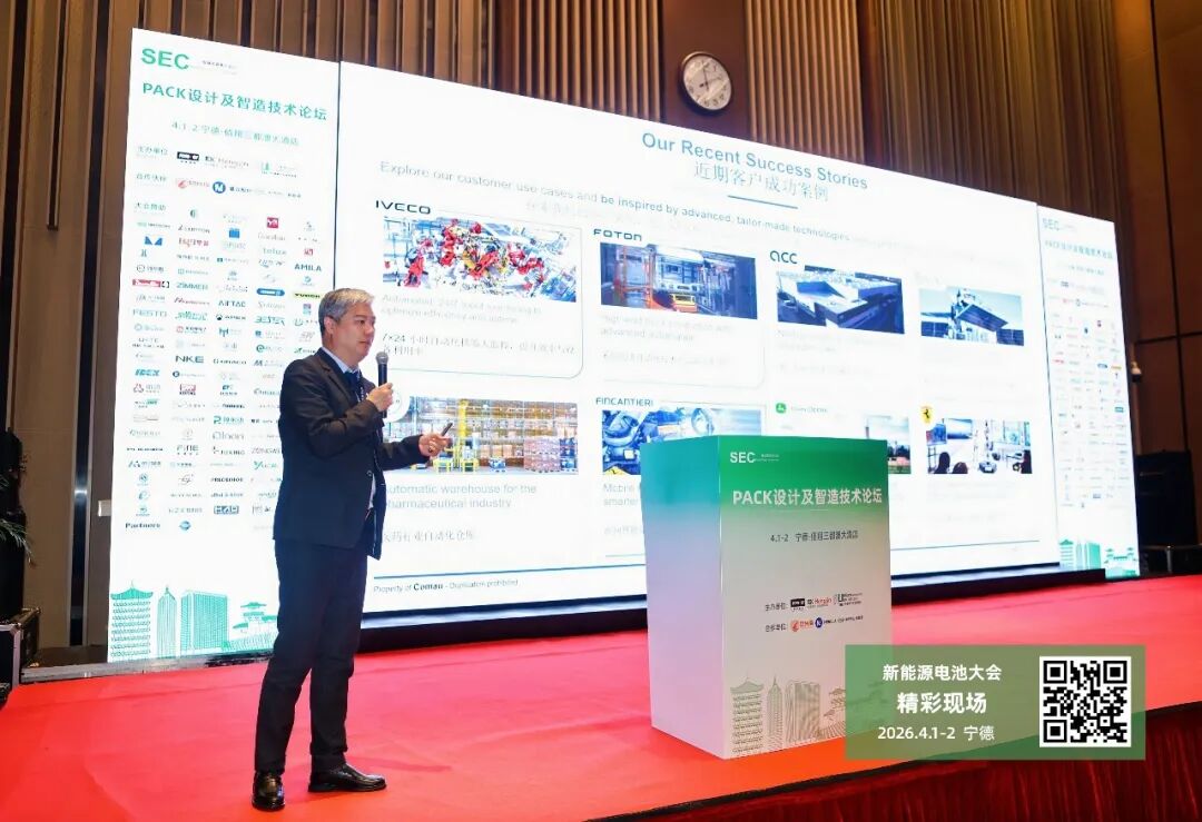 柯马亚太首席技术官索雷发表了题为“柯马助力电池生态全价值链”的主旨演讲。他指出,随着行业由规模扩张阶段迈向高质量发展阶段,电池制造的竞争重心正加速转向对生产效率、制造良率与工艺一致性的系统性提升。在此背景下,具备标准化架构与模块化设计能力的制造体系,成为应对技术路线快速迭代、缩短产品导入周期的关键支撑。