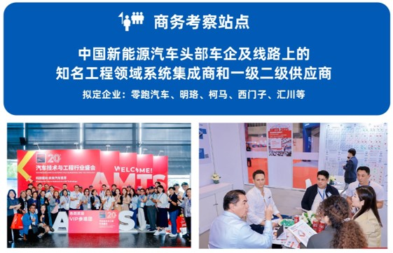 ◼成为商务考察站点之一:通过技术展示及精准的商务对接,直面1000+海外车企高层与决策人员,助您开拓海外目的地市场。