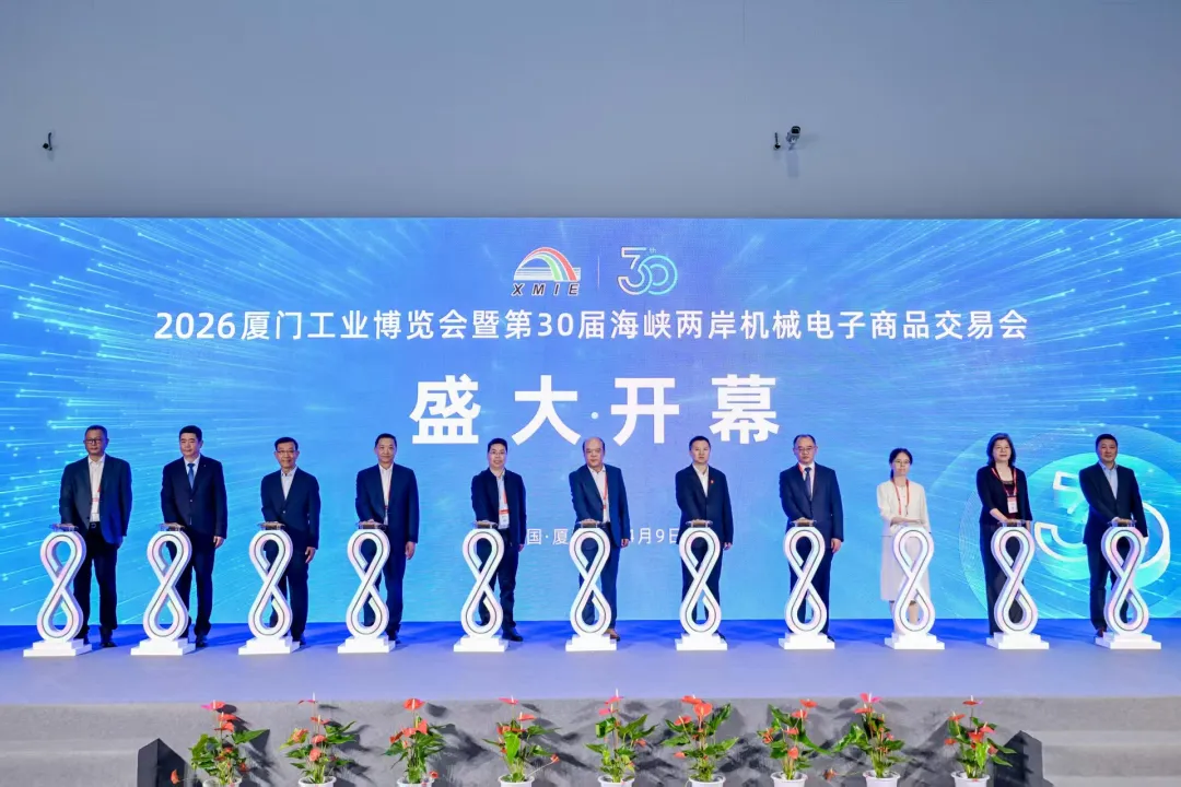 4月9日,鹭岛厦门再次成为工业制造圈瞩目的焦点——2026厦门工业博览会暨第30届海峡两岸机械电子商品交易会(以下简称“厦门工博会”)在厦门国际博览中心盛大开幕。中国机械工业联合会党委常委、副会长李奇,中国机电产品进出口商会副会长白雪峰,商务部直属机关党委原常务副书记、中国机电商会台北办事处原主任李荣民,台湾区电机电子工业同业公会副理事长胡惠森,东浩兰生(集团)有限公司党委副书记倪瑾,东浩兰生会展集团股份有限公司总裁毕培文,汉诺威米兰(上海)展览有限公司董事总经理刘国良,厦门市会议展览促进中心主任张建斌,厦门市工业和信息化局党组成员刘婷,厦门海翼集团有限公司总经理金中权,厦门国贸会展集团有限公司总经理刘旭东等嘉宾共同出席开幕式。
