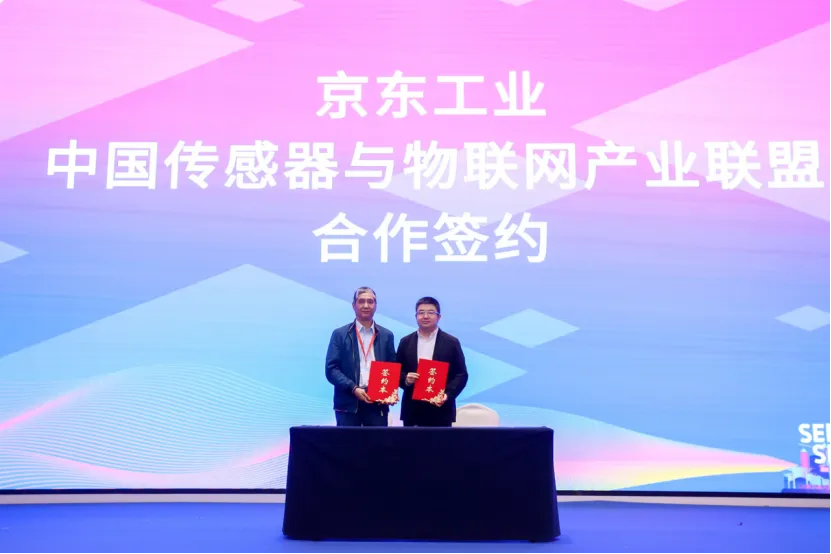 京东工业元器件业务部总经理崔灏田与中国传感器与物联网产业联盟常务副秘书长倪小龙,作为代表签署合作协议,双方将通过协同合作,共同构建产业数智供应链体系。