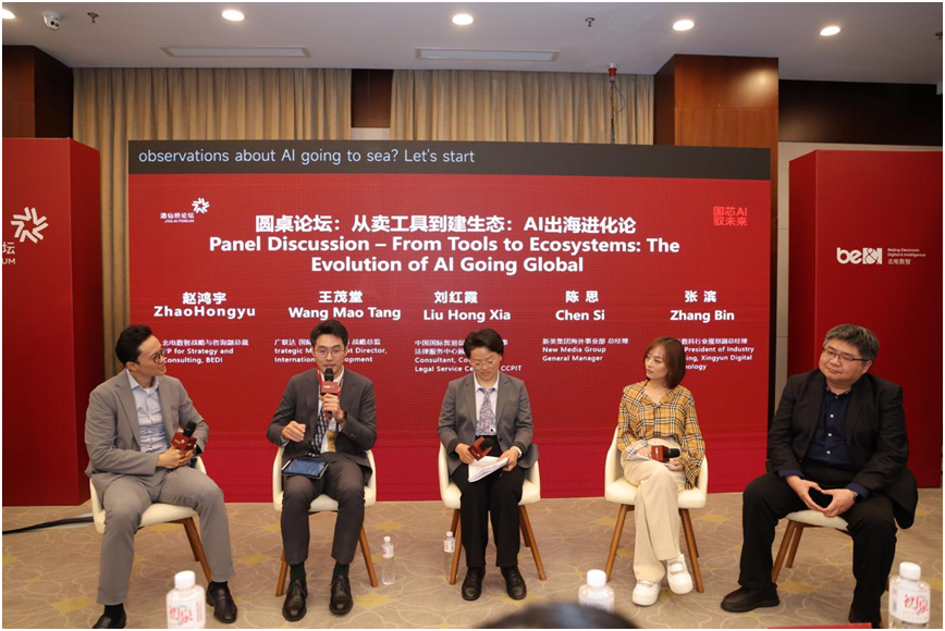 在圆桌对话环节,北电数智、新美集团、广联达、中国国际贸易促进委员会、兴云数科等代表以“从卖工具到建生态:AI出海进化论”为主题展开深度交流,为AI出海生态共建凝聚了行业共识。