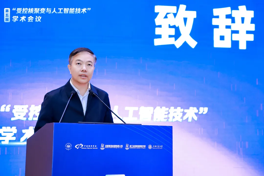 上海交通大学党委常委、副校长蒋兴浩致辞,对远道而来的各位来宾表示热烈欢迎。他介绍了上海交大在能源与信息交叉领域的布局,学校新成立了直属研究平台——未来能源研究院,旨在为聚变能这一未来产业培养急需的交叉创新人才。他指出,期待与各单位进一步深化合作,共同构筑聚变科学与人工智能交叉融合的创新高地,合力培养新质生产力发展所需的交叉创新人才,推动开展高水平国际合作,在人类共同面对的未来能源挑战中贡献更多“中国智慧”。