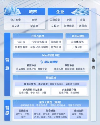 以"智感"构建视觉感知、融合感知、感知协同三位一体的全域智能感知体系,依托大模型全面提升复杂环境的感知数据质量与场景理解能力,实现"感知即智能、数据即价值",以全域感知推动数据质量跃迁。以"智算"深度融合大模型与智慧物联,以算力为基座、数据为养料、智能体为手段构建一体化智能计算体系,覆盖行业Agent、公有云服务、MaaS智能中枢、智算基础设施全栈能力,深度赋能政企数智化。