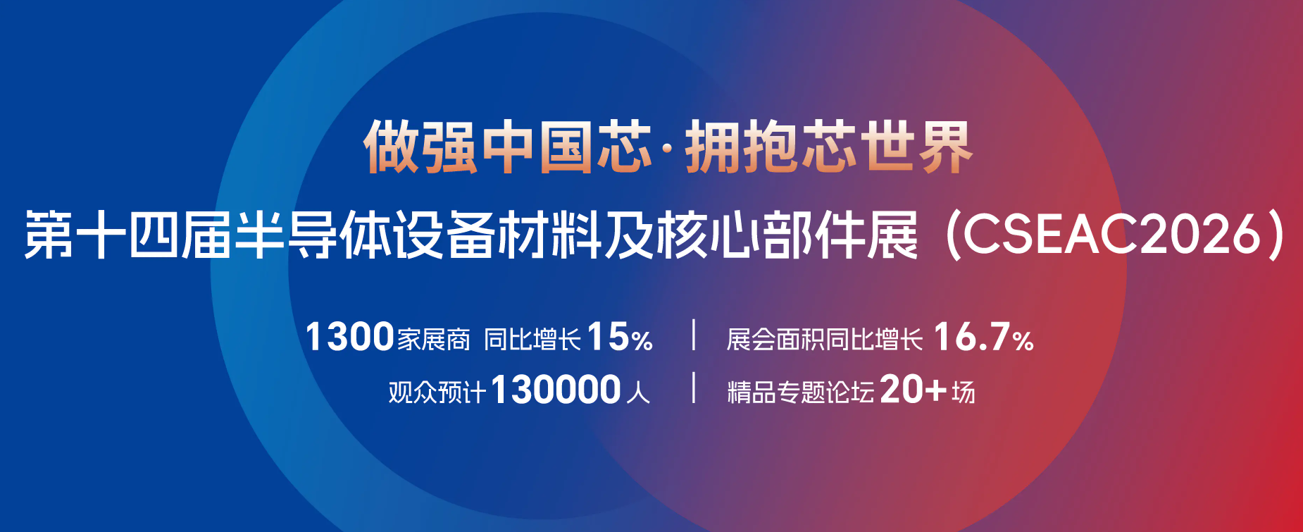 第十四届半导体设备材料及核心部件展(CSEAC 2026)将于2026年8月31日至9月2日在无锡太湖国际博览中心举办。作为我国半导体领域具有广泛影响力的年度展会,CSEAC始终以“专业化、产业化、国际化”为宗旨,致力于为全球半导体行业搭建技术交流、经贸合作与市场拓展的高效平台。联系人:黄先生 13917571770(微信同号) 官方渠道:https://www.cseac.org.cn/cn