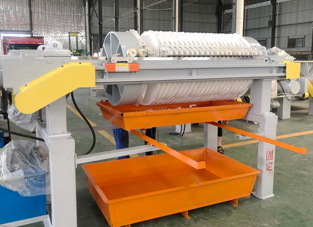 2.滤室形成:压紧装置推动推板,将滤板和滤布压紧形成密闭滤室。
