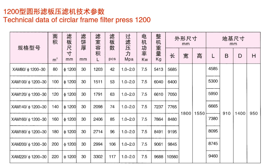 l 型号:XAM系列(如中1200型)。