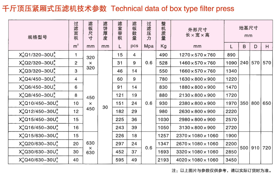 2. 该类设备主要由机架、滤板、压紧装置和滤布组成,通过人工旋紧千斤顶实现滤室密封,结构稳定可靠。