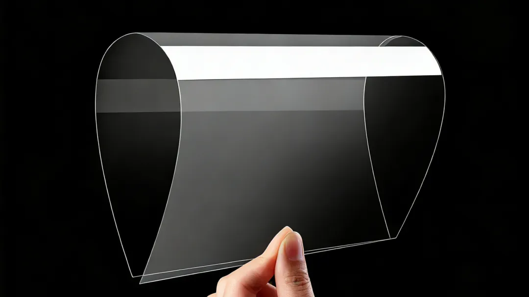 UTG(Ultra-Thin Glass,超薄柔性玻璃) 是厚度集中在30–100μm(约为头发丝直径1/3–1倍)的特种玻璃,通过精密化学减薄与强化工艺,在保留玻璃高透光率、高平整度、耐刮擦、化学稳定等优势的同时,突破传统玻璃脆性桎梏,可实现最小0.5mm弯折半径、20万次以上反复弯折的优异性能,成为折叠屏、卷轴屏、车载柔性显示等终端的核心盖板与基板材料。