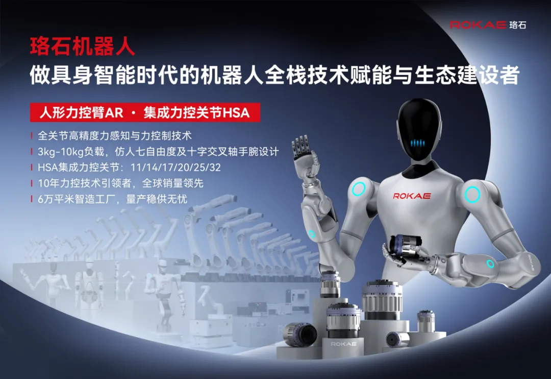 在具身智能方向,珞石机器人持续加码,已发布HSA高精度一体化力控关节、AR系列人形力控机械臂、轮式双臂机器人等多款具身产品,形成“关节+手臂+整机”的具身智能三件套。截至目前,公司已获得超万台具身智能机器人订单,落地应用于汽车、3C、新能源等行业物料抓取、检测与搬运等环节,在力控人形机械臂出货量及力控应用市场份额方面位居全球前列。